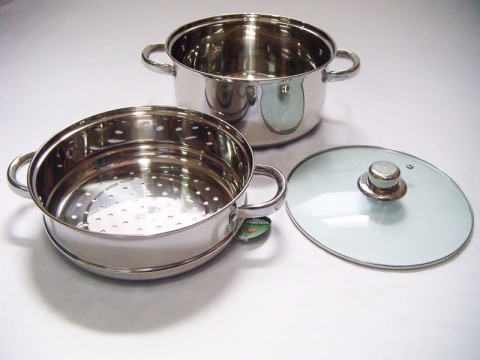 Zestaw wykonany z wysokiej jakości stali nierdzewnej.Trzy warstwowe dno łatwo przewodzi ciepło.Umożliwia szybkie podgrzanie żywności i przez dłuższy czas utrzymuje temperaturę.Praktyczny profil brzegu garnka zapobiega rozlewaniu się płynów podczas gotowania.Pozbawione kantów profilowane dno ułatwia zarówno nakładanie potraw jak i utrzymanie w czystości.Możliwości zdrowego sposobu przyrządzania potraw z małą ilością wody lub tłuszczu.Pokrywka wykonana z wysokiej jakości grubego szkła. Zestaw łatwy w utrzymaniu w czystości.Można myć w zmywarkach. Pojemność : 5.0 L Wymiary : 24 cm x 11.5 cm